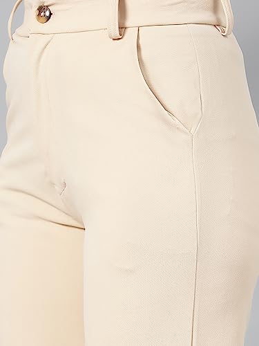 Pamper yourself with a stylish comfort in this cool pair of beige pants from the latest collection of Kotty. Well crafted in premium cotton blend for unmatched drape complemented by fine softness and a smooth touch for ease of wear, these are tailored in a stylishly designed straight fit, cross pocket with a high-rise silhouette to compliment your contours. Pair them with a contrast top for an alluring combination.Kindly ensure the size chart before buying.