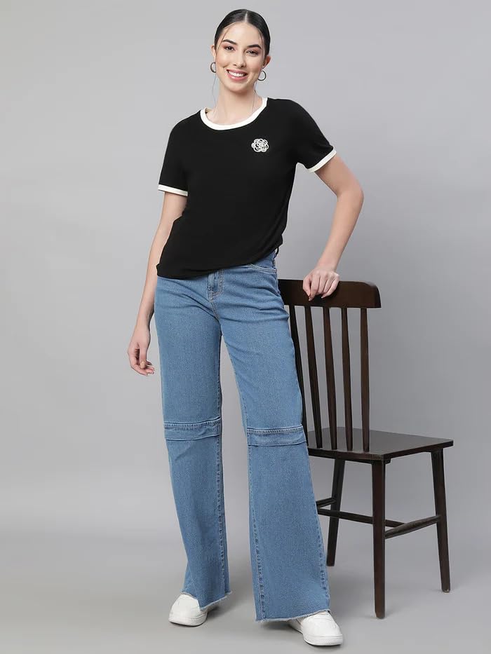 Discover the allure of high waist jeans for women, a timeless favourite that accentuates curves and offers a flattering silhouette. Embrace the trend with baggy jeans for women, combining comfort and style in a relaxed fit that exudes confidence. For a chic and functional look, opt for cargo jeans for women, offering ample pockets and a contemporary edge. Elevate your fashion game with wide leg jeans in a high waist design, a modern twist on a classic style that adds elegance to any outfit. Seeking a sleek and versatile option? Our collection includes straight fit jeans for women, delivering a tailored look suitable for various occasions. For those aiming for a retro vibe, bell bottom jeans for women are the go-to choose, creating a distinctive and playful aesthetic. Embrace a laid-back yet stylish look with boyfriend jeans for women, designed for comfort without compromising on fashion. And for a classic silhouette that never goes out of style, explore our selection of bootcut jeans, offering a flattering fit for every body type. Whether you prefer a snug fit or a relaxed feel, our assortment of jeans for women caters to diverse preferences and sizes. Elevate your fashion statement with our range of cuts, washes, and designs, curated to suit every personality and occasion.