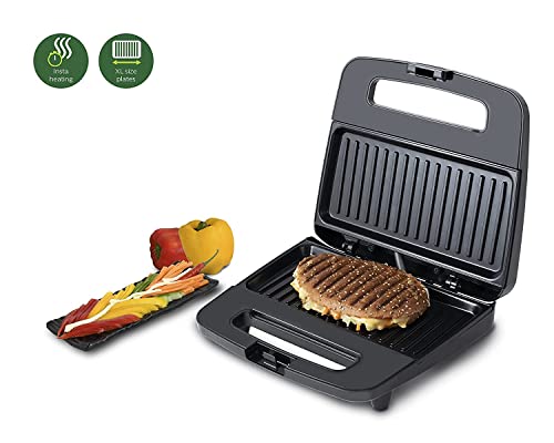 “Enjoy homemade grilled sandwiches, everyday. 25% more volume* for bigger breads & wraps. Prepare perfectly grilled and evenly browned sandwiches & wraps in the convenience of your kitchen with Philips panini maker. The XL sized grill plates along with UHD design gives you bigger ,crispier and tasty sandwiches & wraps”