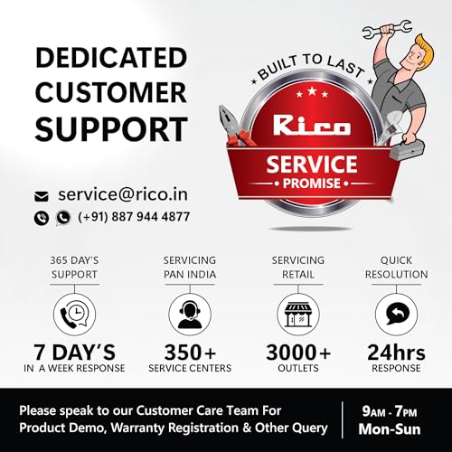 2 YEAR WARRANTY & AFTER SALES SERVICE: Reliable Rico Warranty with the best after sales service in over 12,000 pin codes across India.
