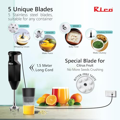Comfortable grip and handle, Big & Super Sharp Blades For Instant Blending with heavy-duty 150W motor. Anti Burn and Heat Mechanism with 100% Copper Motor To Save Electricity