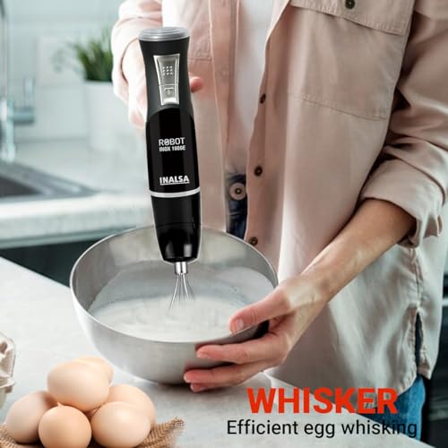 EFFECTIVE 20 SPEEDS & FUNCTIONAL TURBO BUTTON: INALSA hand blender with 20 variable speeds control, adjust the blade speed and the texture of every blend and give you maximum choice and precision to prepare foods from smooth purees to chunky homemade salsas. A separate Turbo Button gives quick burst of power to blast ice faster and blend your ingredient or refresh the blade and cup with water for fast cleaning.